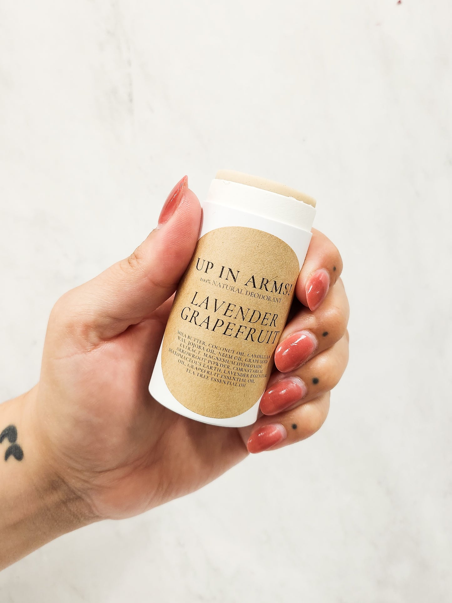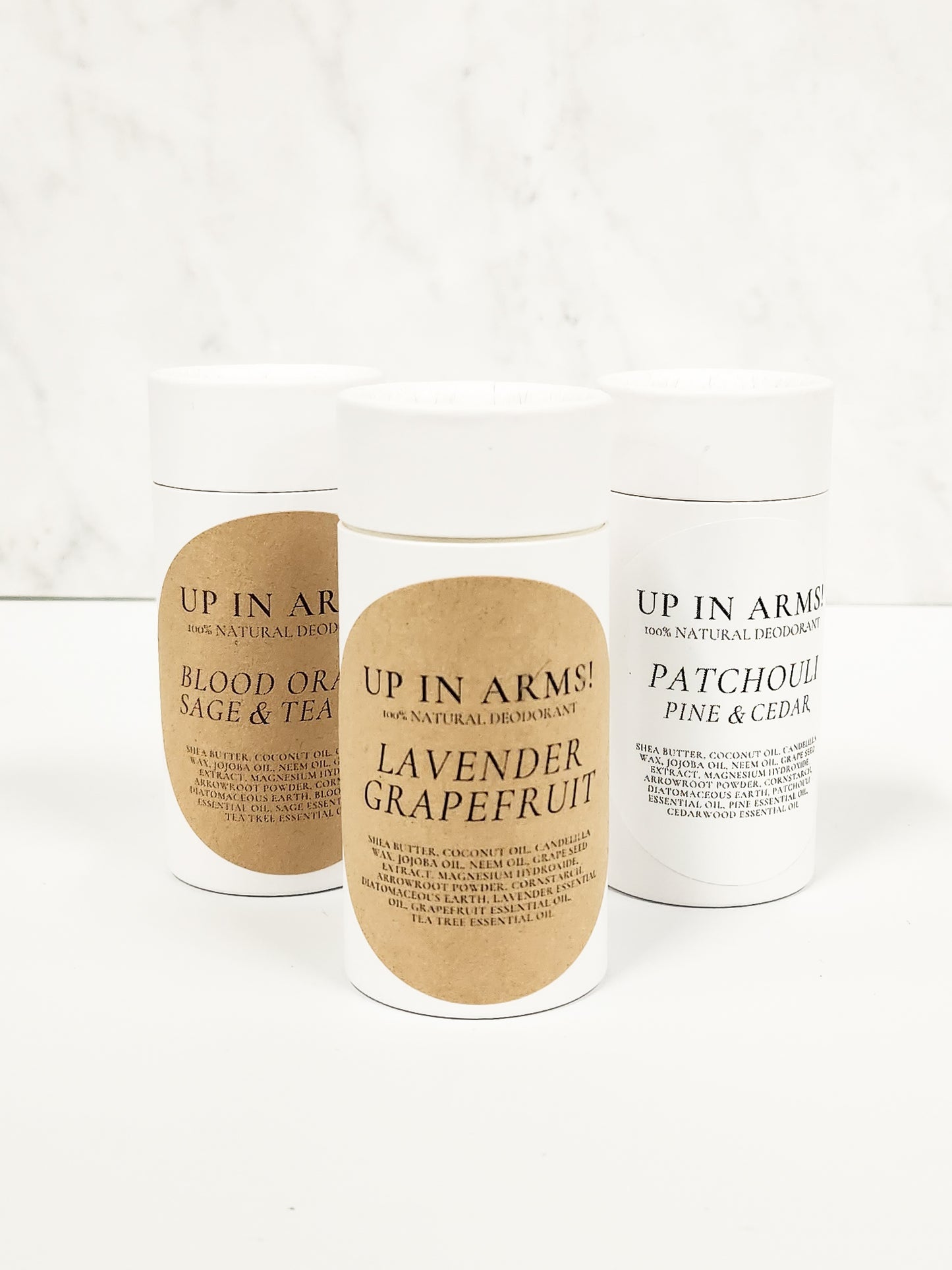 Smell ya never! This all-natural deodorant goes on smooth and leaves your underarms feeling silky and smelling fresh all day. Made with raw, unrefined Shea Butter and handmade Calendula Infused Jojoba Oil, our deodorant easily penetrates deep into your skin—guaranteeing hours of protection, comfort, and anti-bacterial defense. Sage and blood orange essential oils work hard to fight odor while tea tree essential oil reduces irritation and inflammation. Our Up in Arms! Deodorant was tested smack in the middle of the Louisiana summer and 9 out of 10 pits agree: it’s a lifesaver!