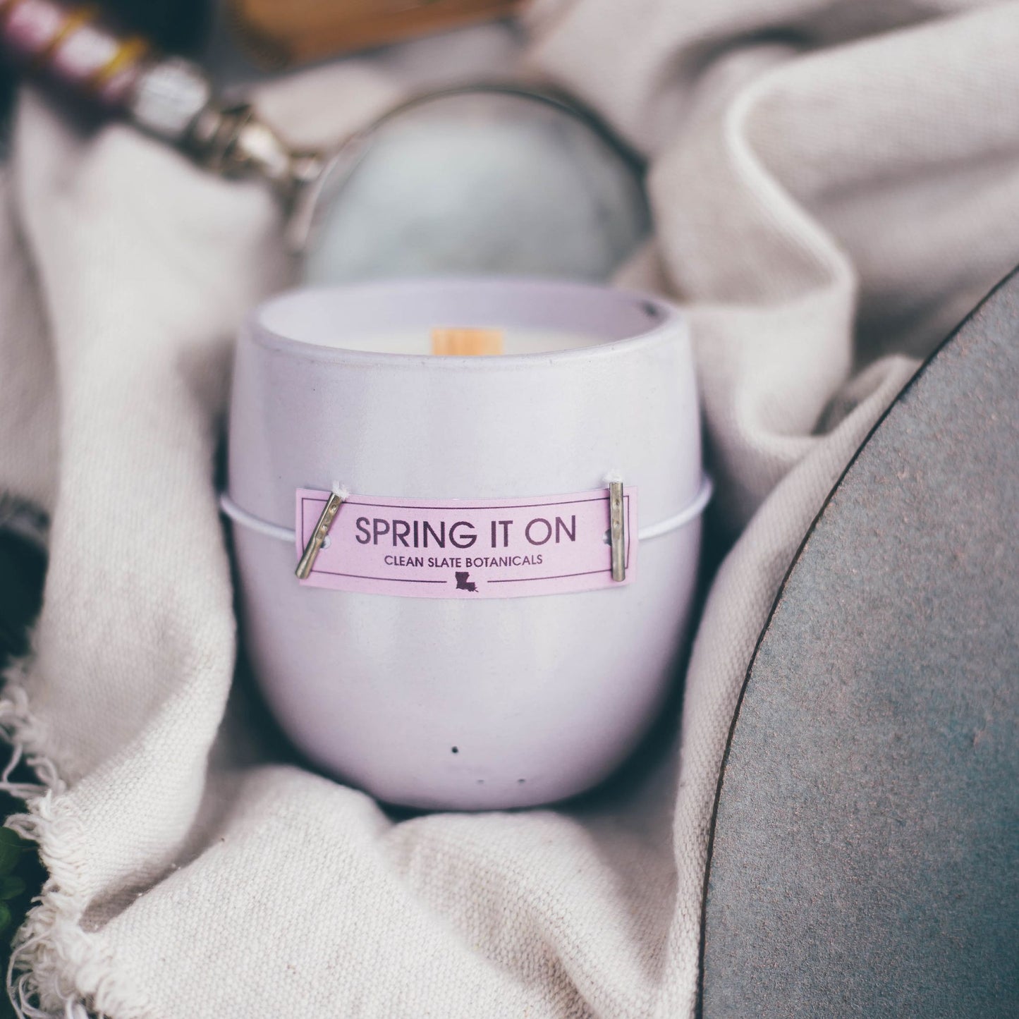 Indulge in the fresh, clean scents of Spring It On! This soy candle features plumeria, gardenia, white peach blossom, and water lily for a truly invigorating experience. The clean burning design brings to mind a dewy, fresh spring morning. Get ready to be transported to a blossoming garden with every burn!